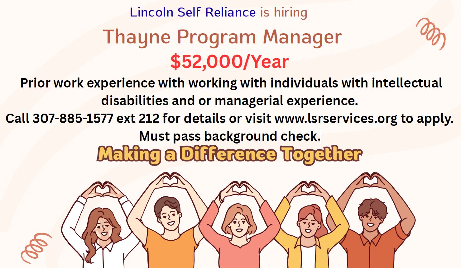 Lincoln Self Reliance is hiring for a Thayne Program Manager. $52,000/Year.