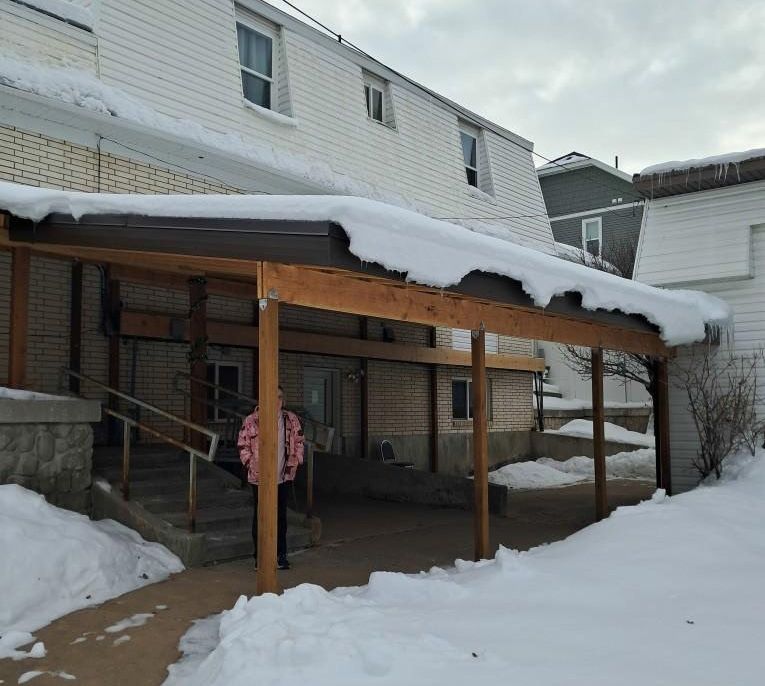 An awning was installed between the front home and back apartments at the Morse Lee home in Evanston. The awning will reduce rain and snow from creating walking hazards for staff and client to walk between the two buildings (pic below).
